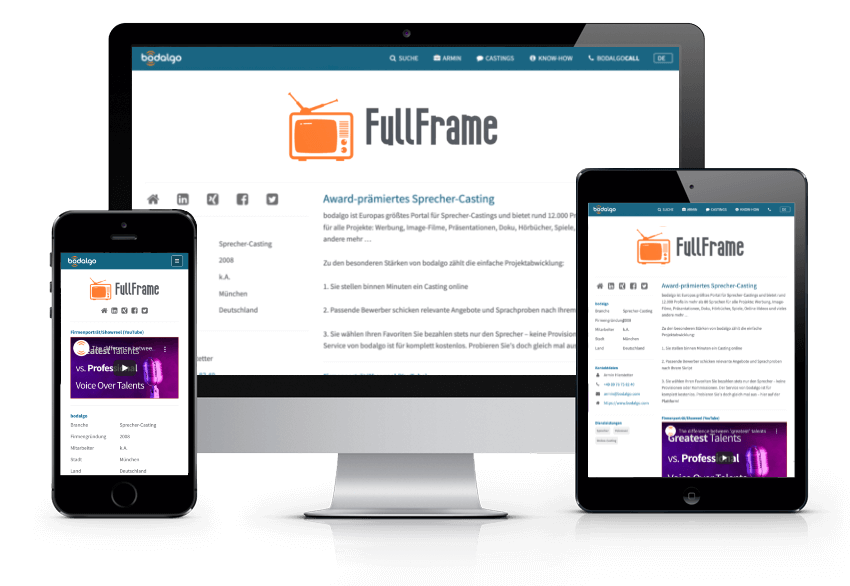 Du bietest Dienstleistungen in Bereichen wie Werbung, Marketing und Content Creation (Video, Audio, Film)? Dann solltest du unser neues Branchenverzeichnis nutzen! Denn viele Kunden von bodalgo benötigen nicht nur die perfekte Stimme, sondern darüber hinaus Experten wie dich! Und genau hier kommt das Branchenverzeichnis bodalgoBusiness ins Spiel.